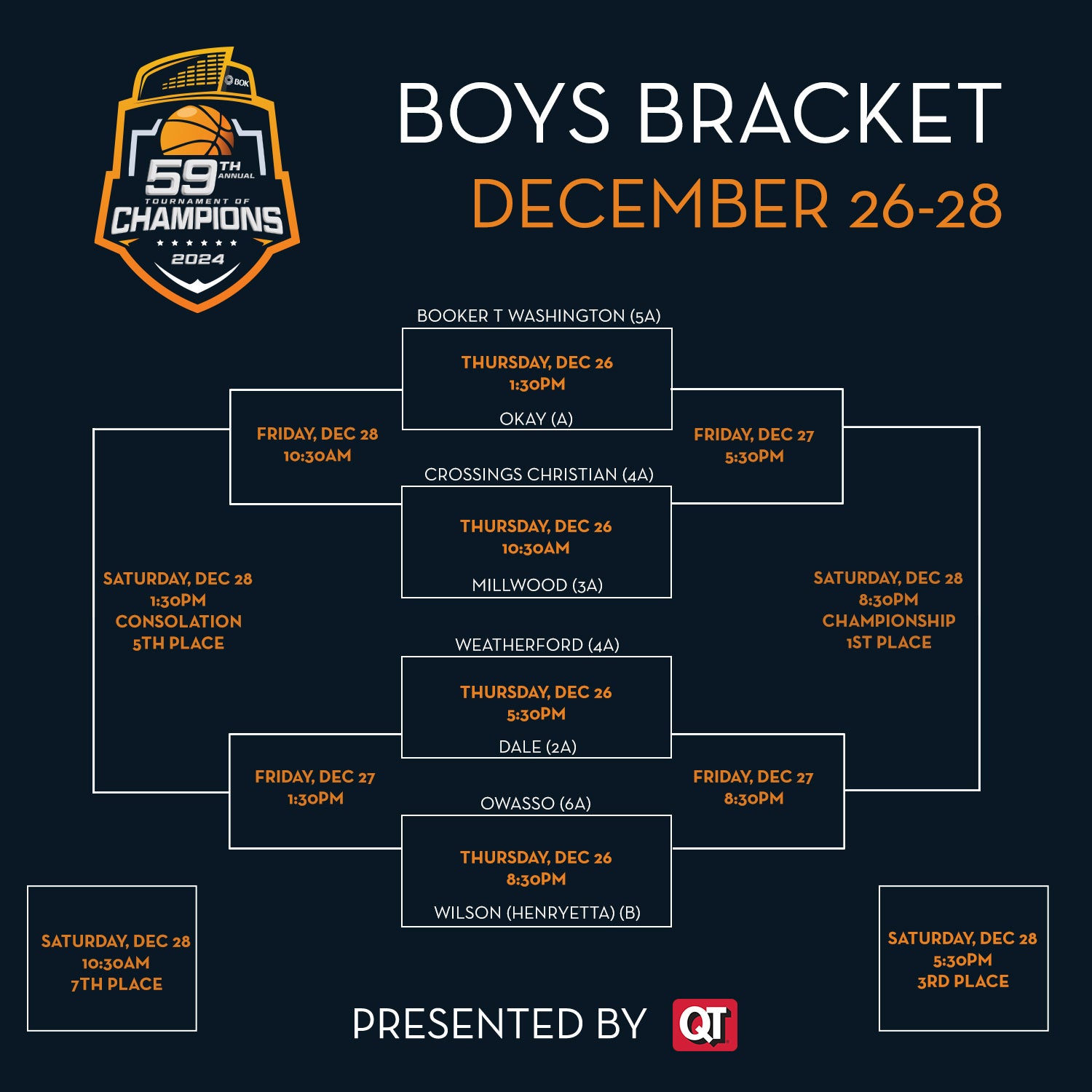 The 60th Annual Tournament of Champions returns to BOK Center on December 29th, 30th, and 31st! Don't miss out on seeing the following teams compete in Oklahoma’s Premier High School basketball tournament. All session tickets on sale December 3 at 11:30AM.